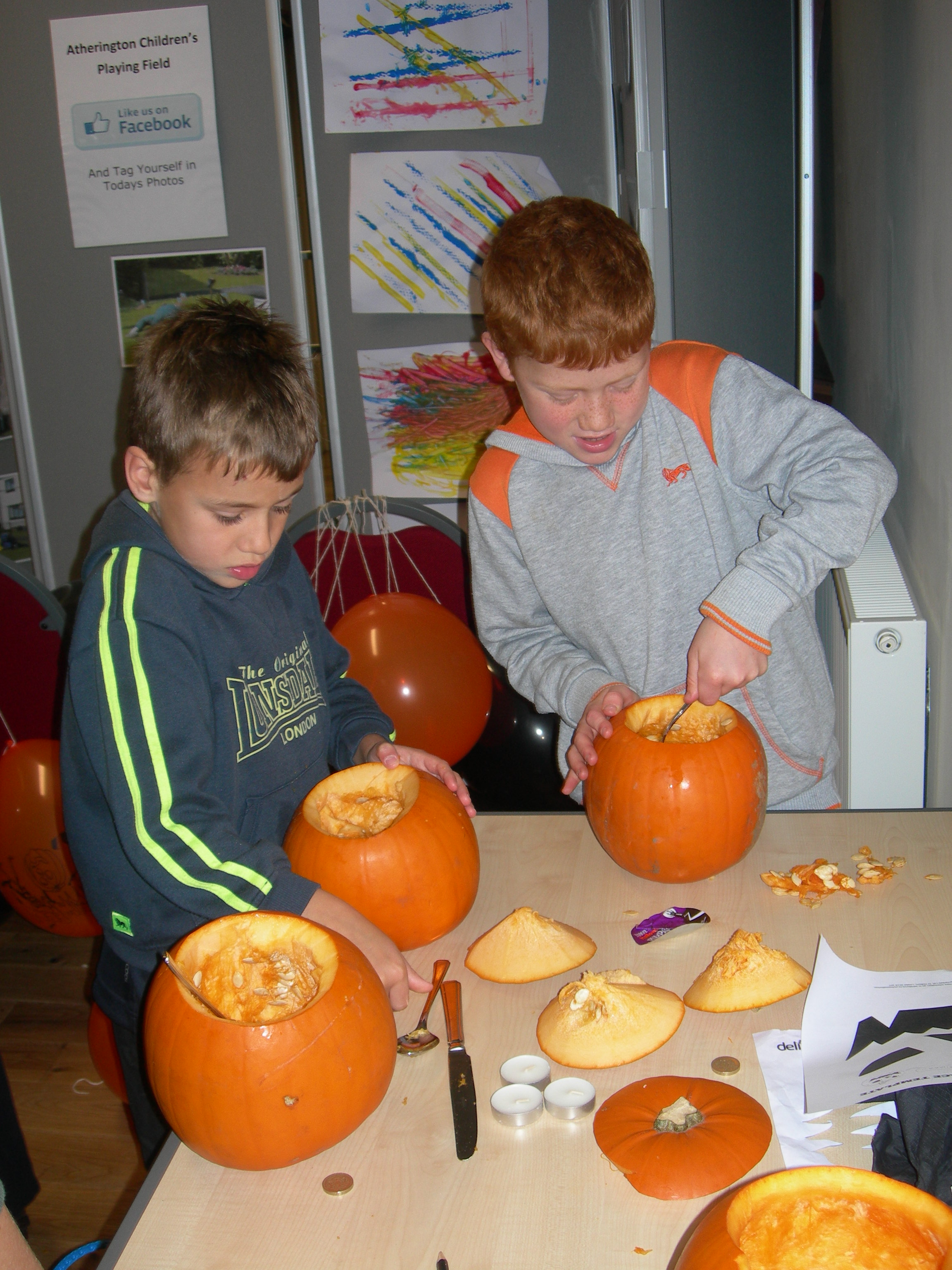 On Monday the 28th October 2013 the villagers of Atherington and friends took part in a pumpkin carve and coffee morning. Fun was had by all! The children carved pumpkins into many different creepy designs. Cakes were sold and a bring and buy sale took place. Many thanks to all who generously supported the event.