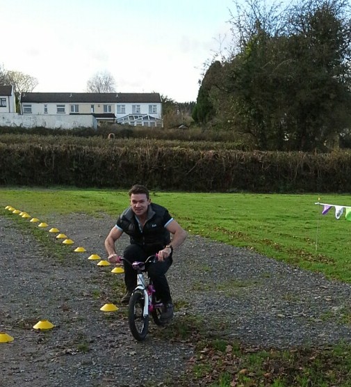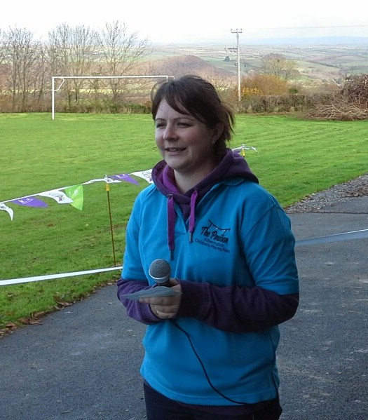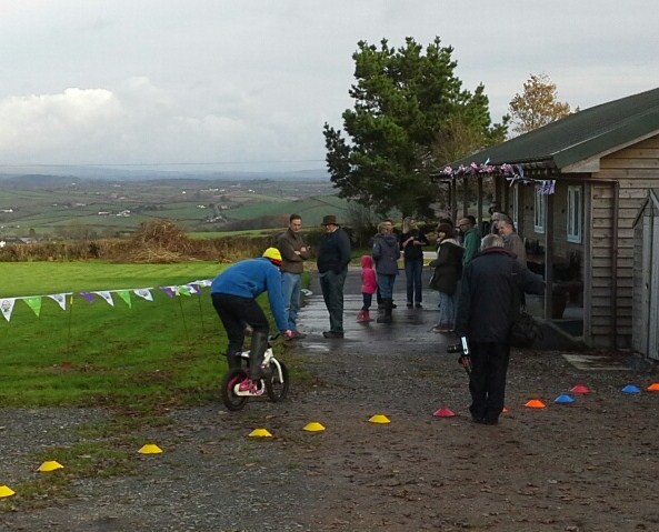Cycle track Opening day. November 23rd. Bring and share lunch and antic’s on the track! Graham Moir,Cyclist – Time trialing specialist cut the ribbon to Open the new track. Becca Miller Atherington Children’s Playing Field Chairperson thanked volunteers for their hard work over the Autumn completing the new track and pathway that runs around the field perimeter. Walter White, District Councillor and Parish Council Chair was also thanked for his